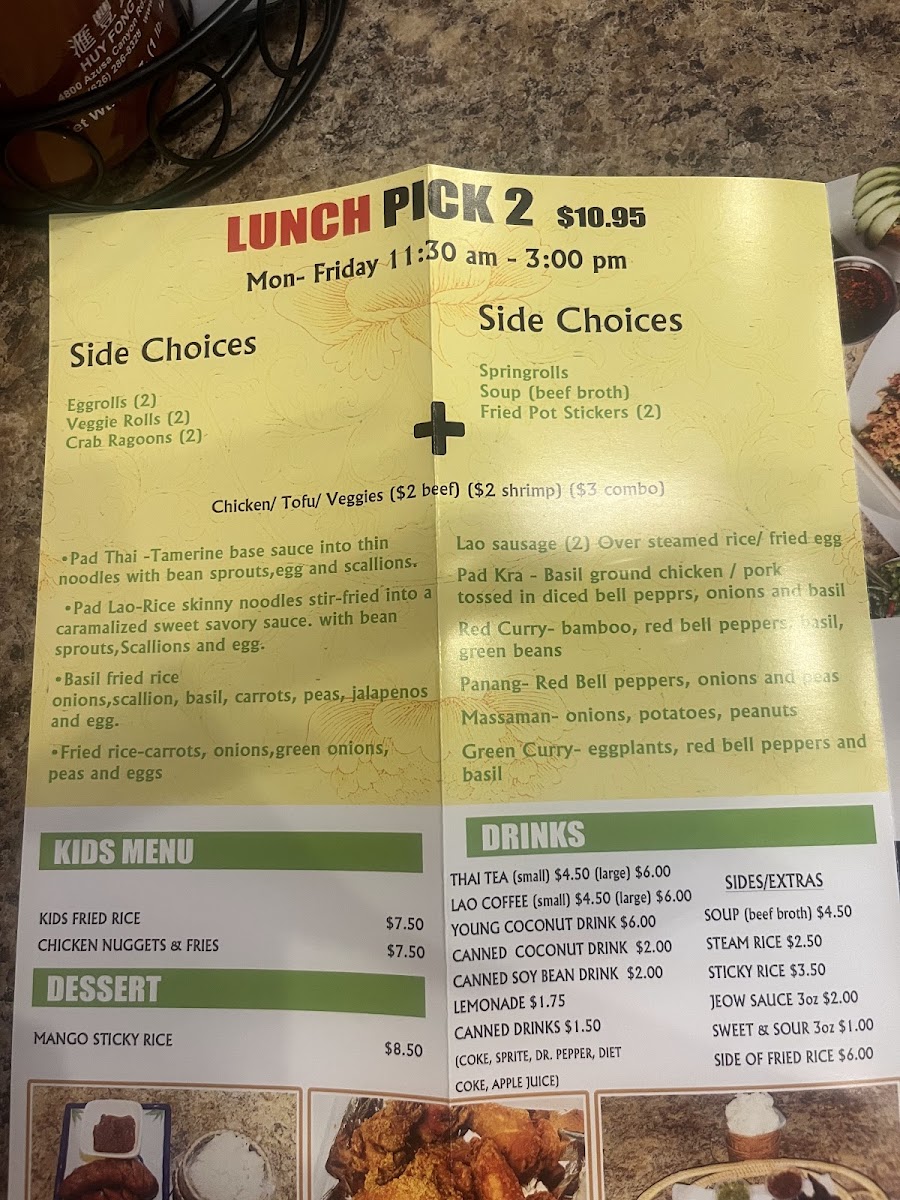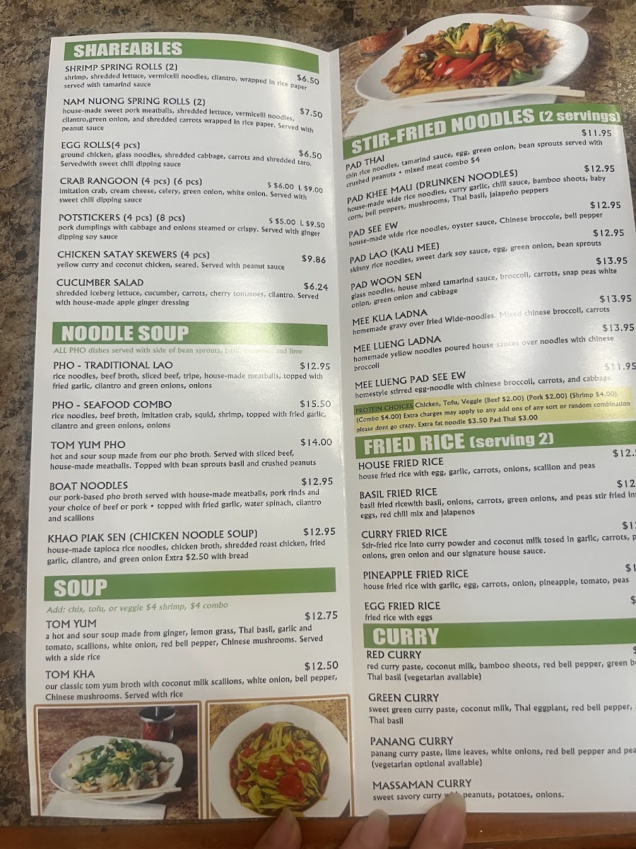 Lao and Thai Spicy Noodle Menu